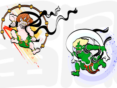 Illustration 風神雷神 Babycat Illustration 風神 イラスト 日本画